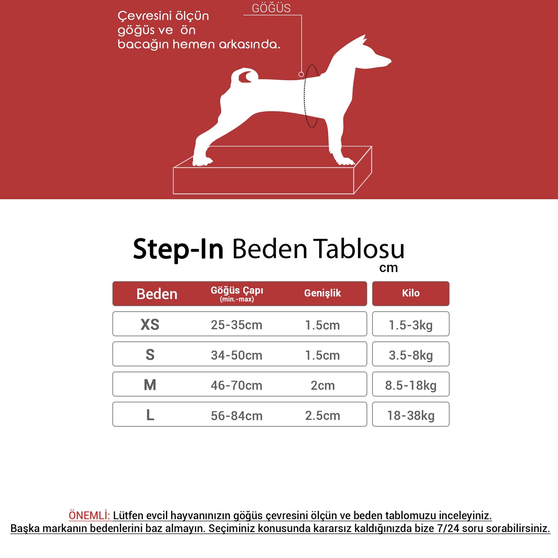 Tailpetz Step-In serisi 5 renk 4 beden olarak mevcuttur