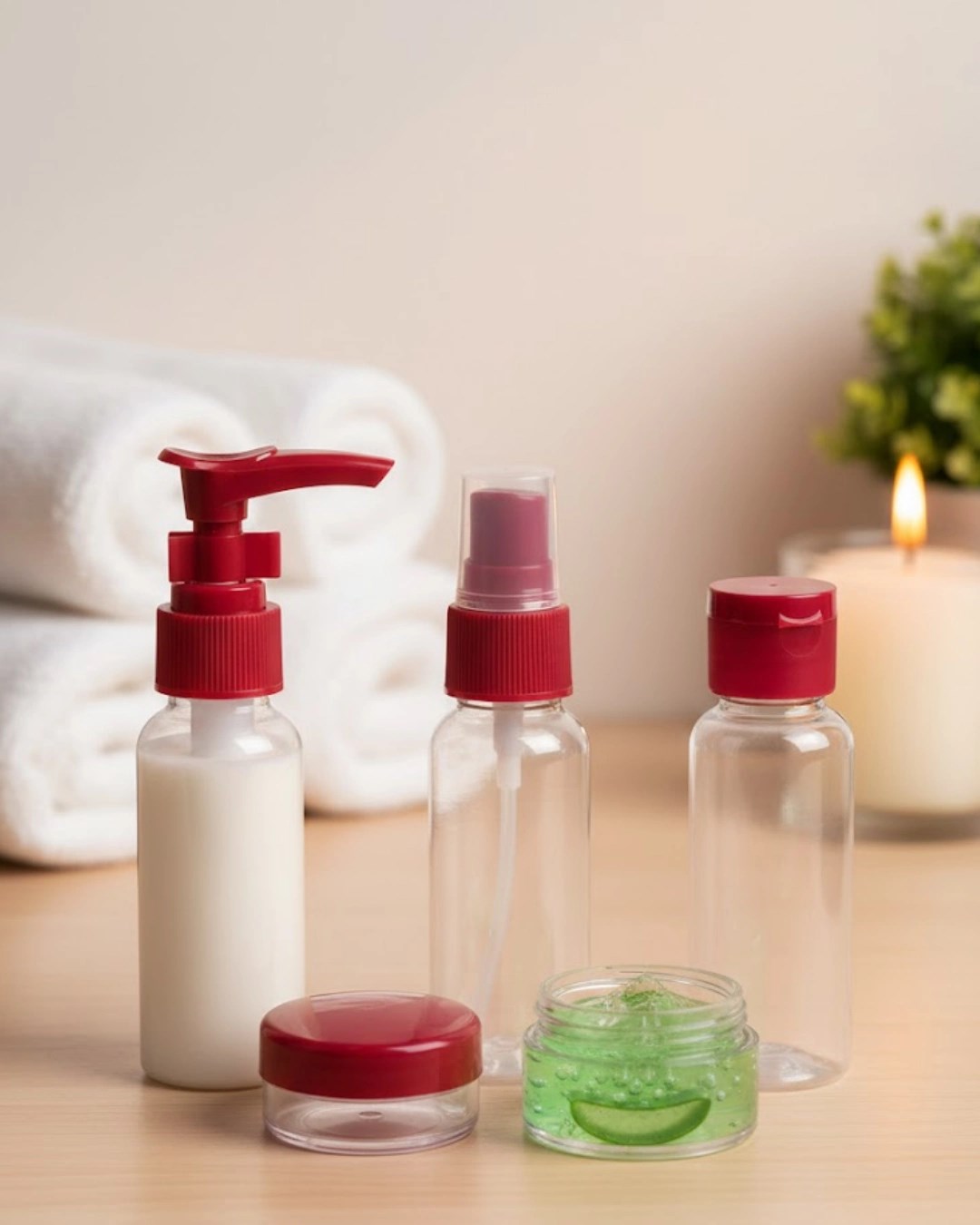 Kompakt 5’li Seyahat Şişesi Seti Şeffaf Kozmetik Kaplar