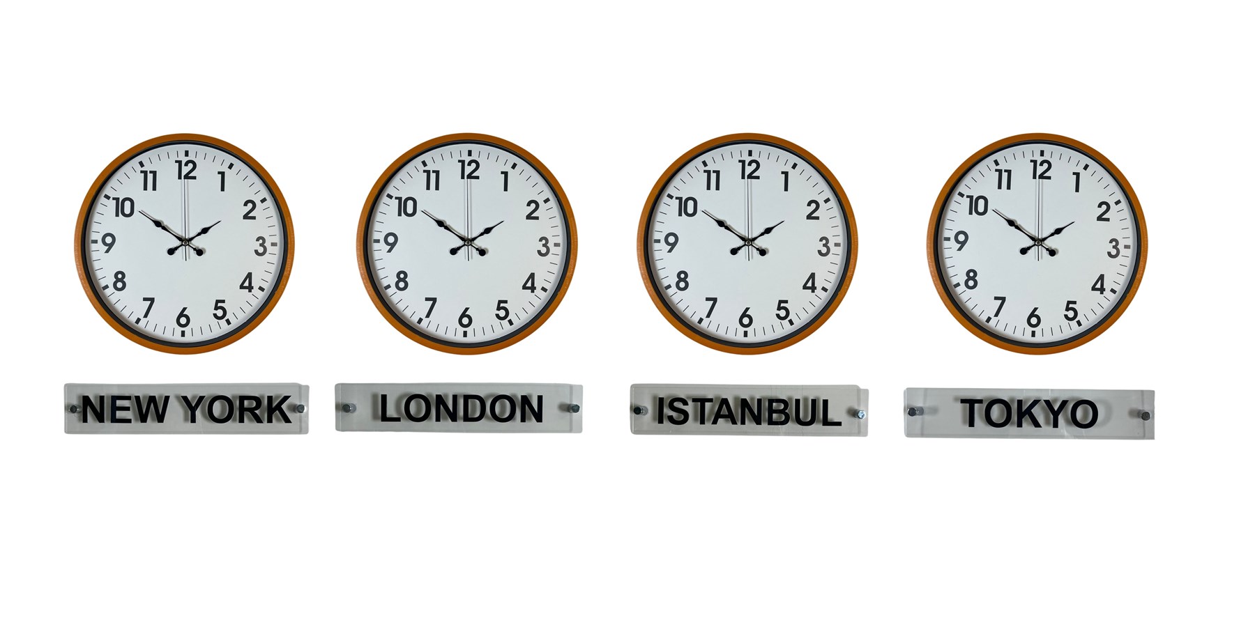 Enerjik ve dikkat çekici turuncu çerçevesiyle öne çıkan 36 cm 4’lü tabelalı dünya saatleri, bulunduğu ortama modern ve dinamik bir hava katar. Farklı şehirlerin saatlerini aynı anda takip etme imkânı sunan bu özel set, özellikle ofis, resepsiyon ve kurumsal alanlarda profesyonel bir görünüm oluşturur.