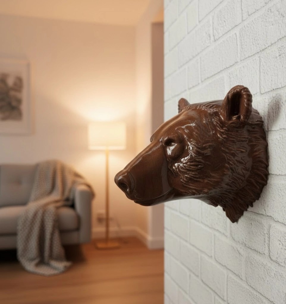 Ev Ve Ofis İçin Dekoratif Ayı Başı Heykel Hediyelik Duvar Aksesuarı