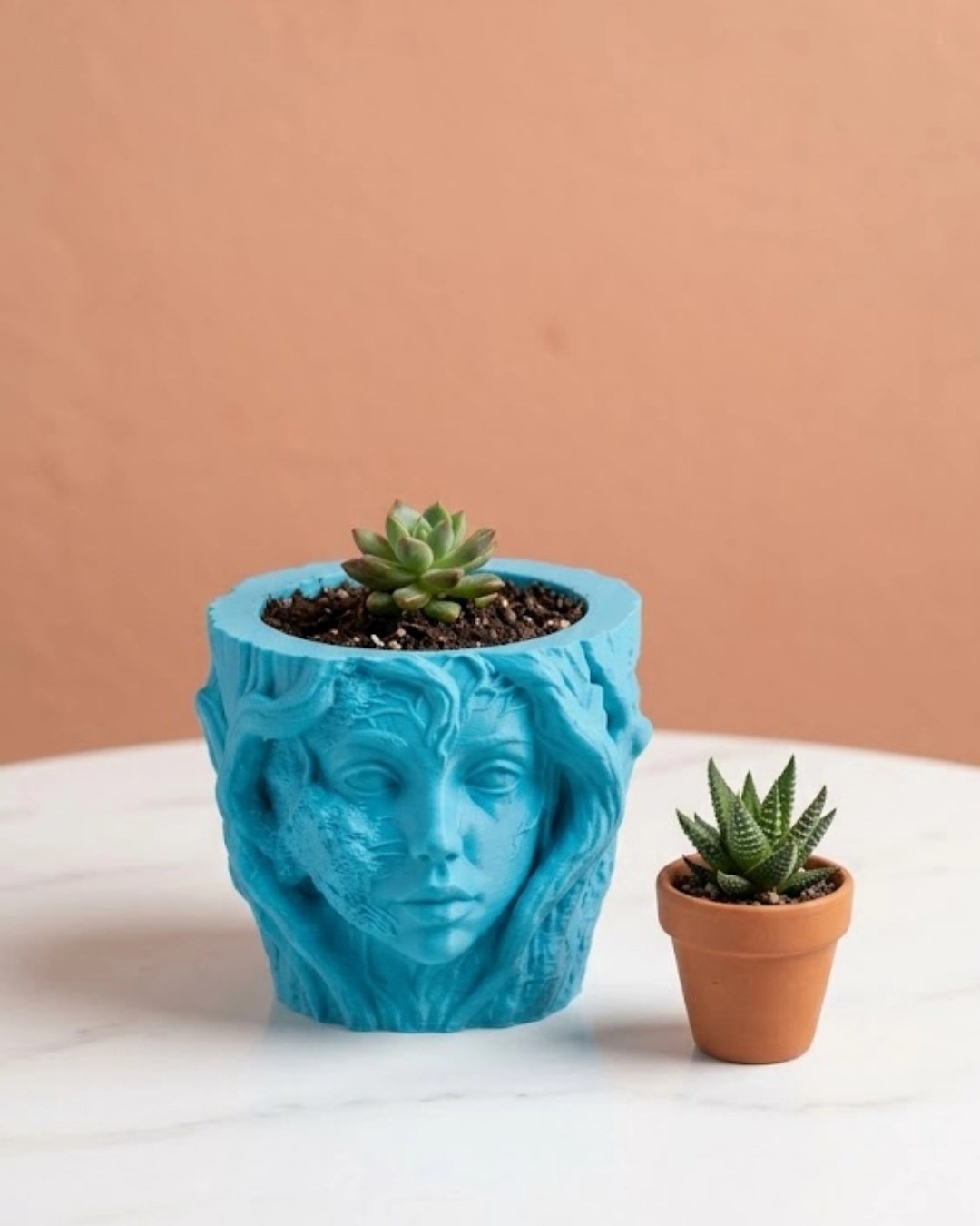 Dekoratif 3d Kadın Yüzü Ağaç Tasarımlı Saksı Vazo Modern Ev Dekoru