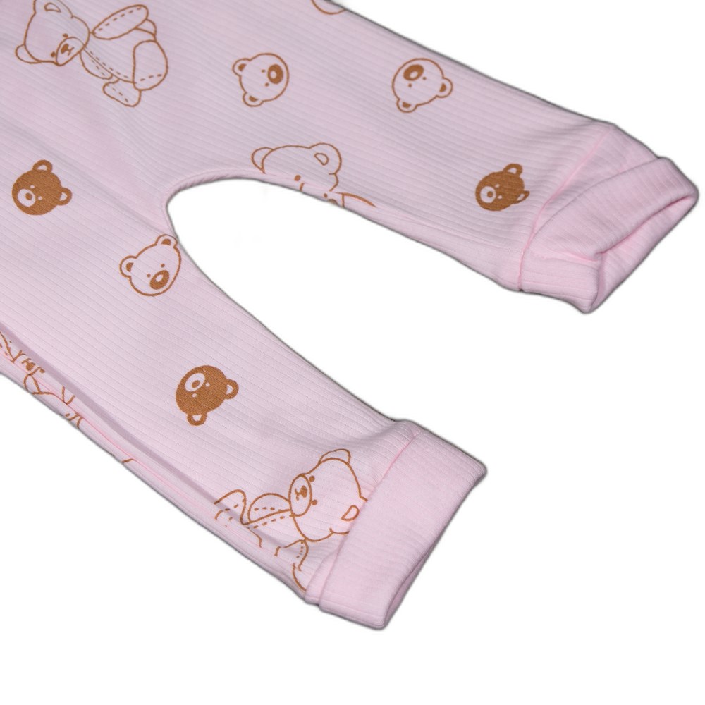 Pembe renkli, ayıcık baskılı bu bebek zıbın takımı %100 organik pamuktan üretilmiştir. Nefes alabilen yapısı sayesinde terletmez, yumuşacık dokusuyla bebeğinizin hassas cildiyle tam uyum sağlar. Üst kısmında sevimli bir ayıcık deseni, alt kısmında ise çeşitli ayıcık ve oyuncak desenleriyle görsel olarak da dikkat çeker. Günlük kullanım için idealdir ve kolayca giydirilip çıkarılabilir. Hem sağlıklı hem de şık bir tercih arayan ebeveynler için mükemmel bir üründür.