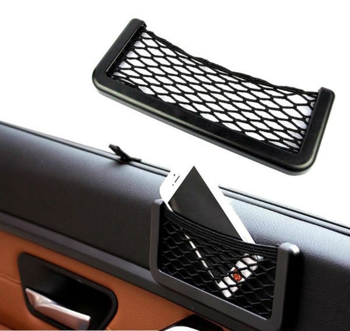 BUFFER® Araç İçi Fileli Pratik Göz Telefon İçin Yapışkanlı Fileli Ceplik