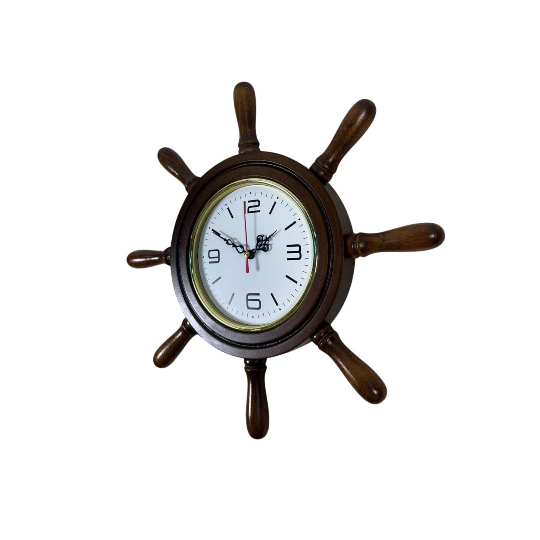 Saat üzerindeki dümen kollarının kavela boyu 8 cm’dir ve bu detay ürünün gemi dümeni görünümünü tamamlayan önemli bir dekoratif tasarım unsurudur.