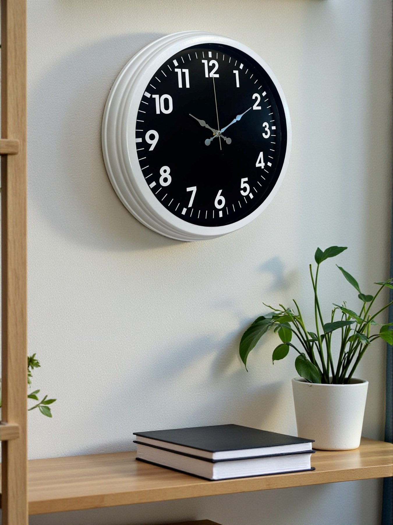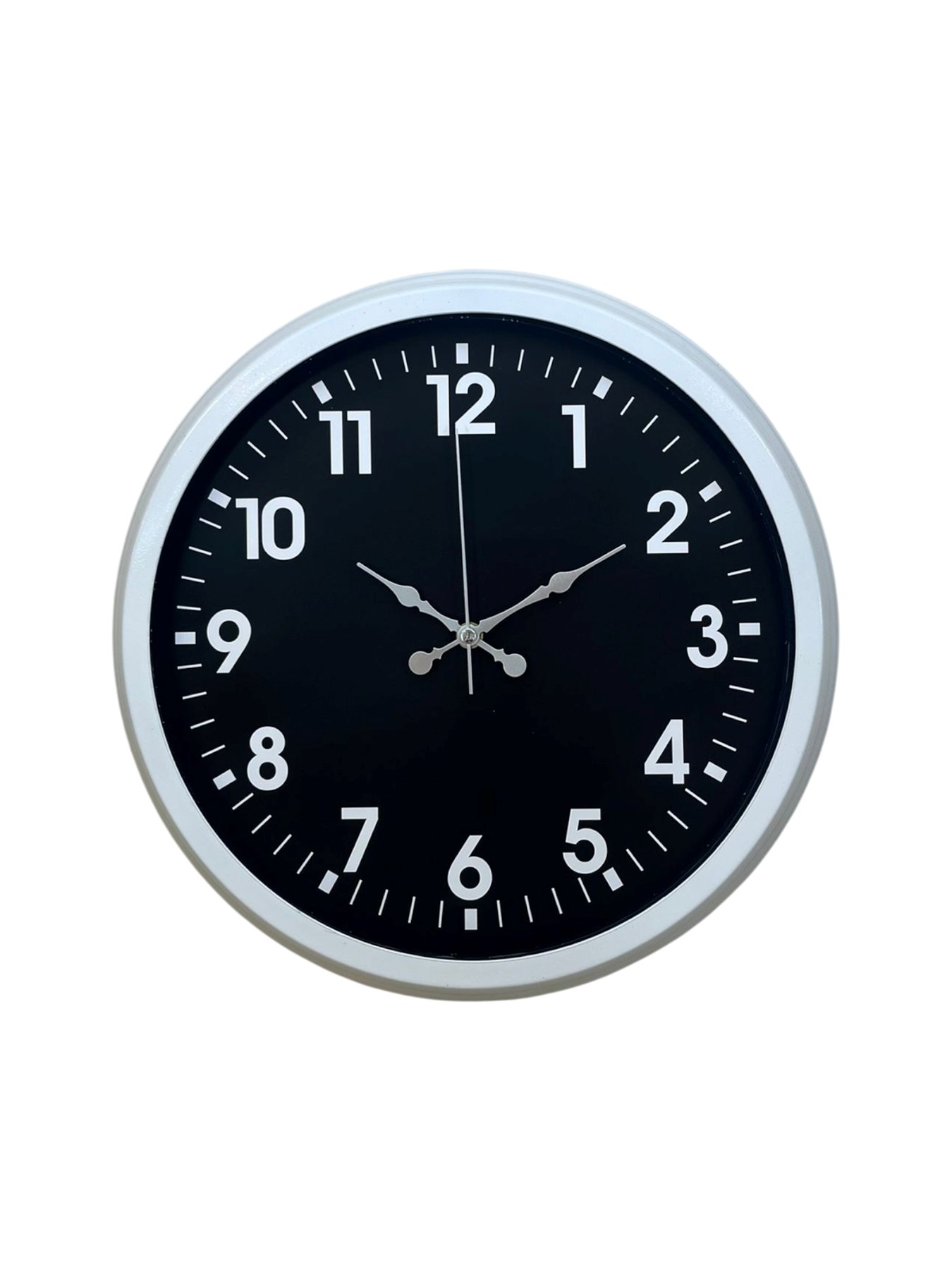Modern tasarımı ve güçlü kontrast yapısıyla dikkat çeken bu duvar saati, beyaz metal kasası ve siyah kadranı sayesinde bulunduğu ortama sofistike ve şık bir hava katar. Net rakam tasarımı, yüksek okunabilirlik sunarken; klasik ve modern çizgileri bir arada barındırmasıyla hem ev hem de ofis kullanımı için ideal bir üründür.