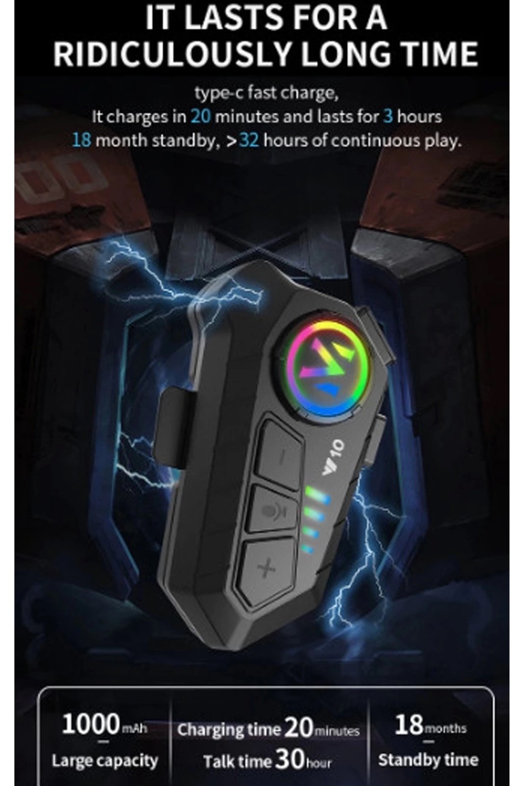 16 Mod Rgb Işıklı Motosiklet Intercom Çift Telefon Destekli