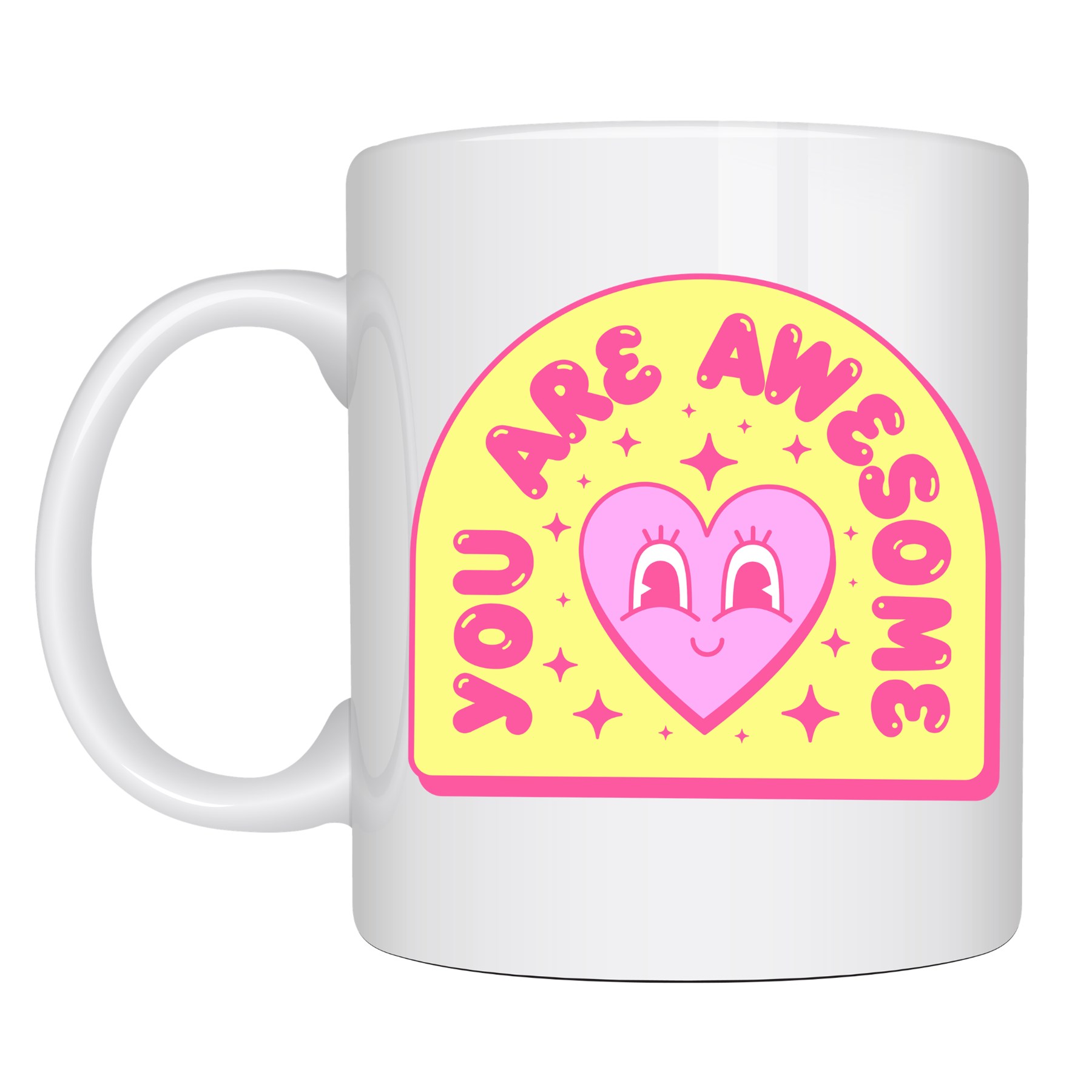 You Are Awesome Yazılı Kalpli Tasarım Porselen Kupa MODEL 187 – Motivasyon Mesajlı Sevimli Kahve Kupası – Hediye Kupa Bardak