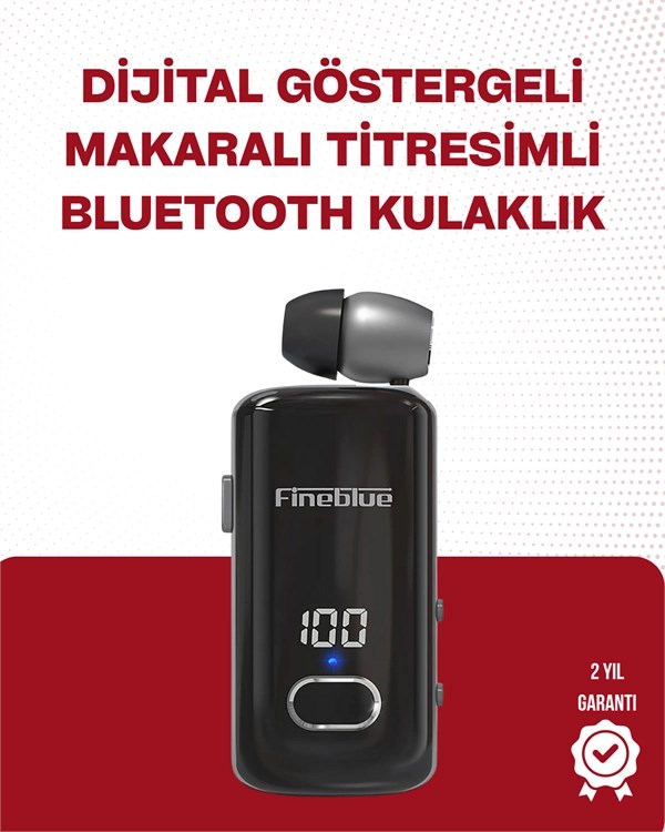 Fineblue F580 Bluetooth Kulaklık – Klipsli, Dijital Göstergeli, Su Geçirmez, 12 Saat Pil Ömürlü