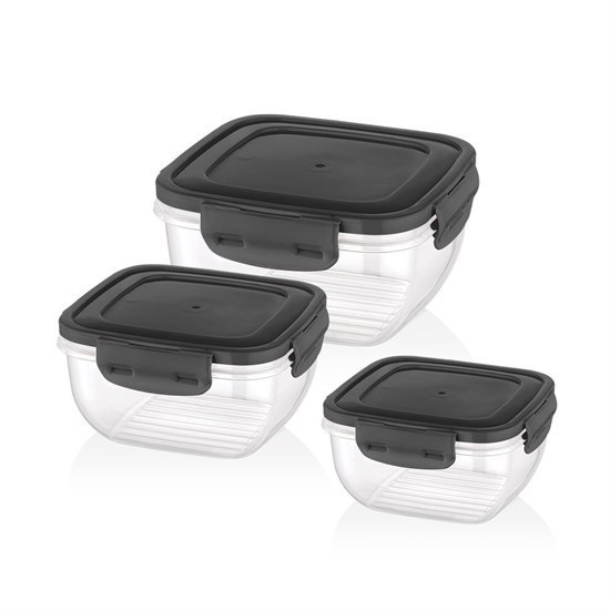 Cook&Lock Renkli Kapak Kare Saklama Kabı Seti 3’Lü (900+1500+2400 Ml)-12161