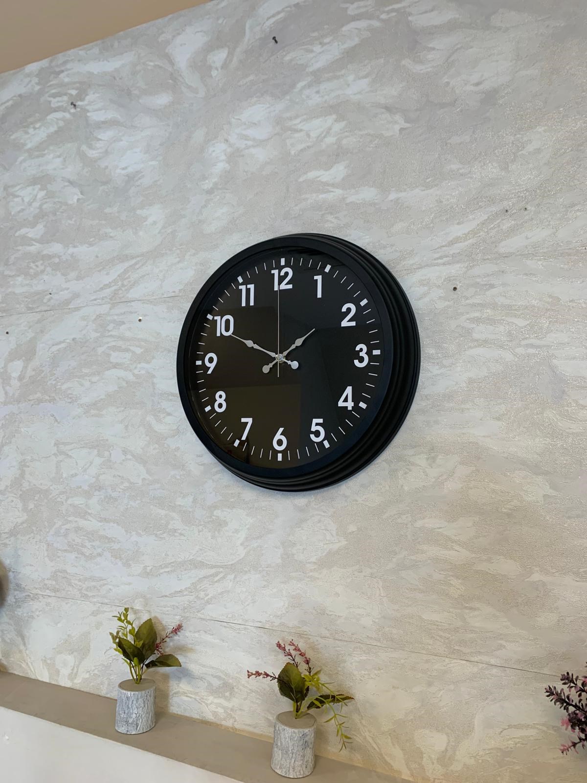 Zarif ve modern tasarımıyla dikkat çeken 40 cm Siyah Duvar Saati, yaşam alanlarında hem şıklığı hem fonksiyonelliği bir arada sunmak isteyenler için ideal bir modeldir. Tamamen siyah tasarımı, beyaz büyük rakamlar ve sade çizgilerle birleşerek güçlü bir kontrast yaratır. Bu sayede saat uzaktan bile net bir şekilde okunabilir ve duvarda dekoratif bir vurgu noktası oluşturur.