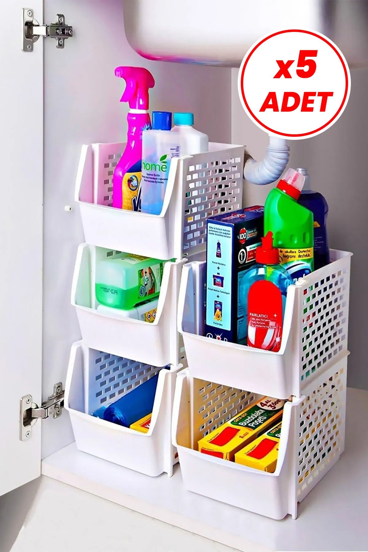 5'Li Üst Üste Eklenebilir Banyo Mutfak Rafı - Buzdolabı Raf Düzenleyici - Dolap İçi Organizer