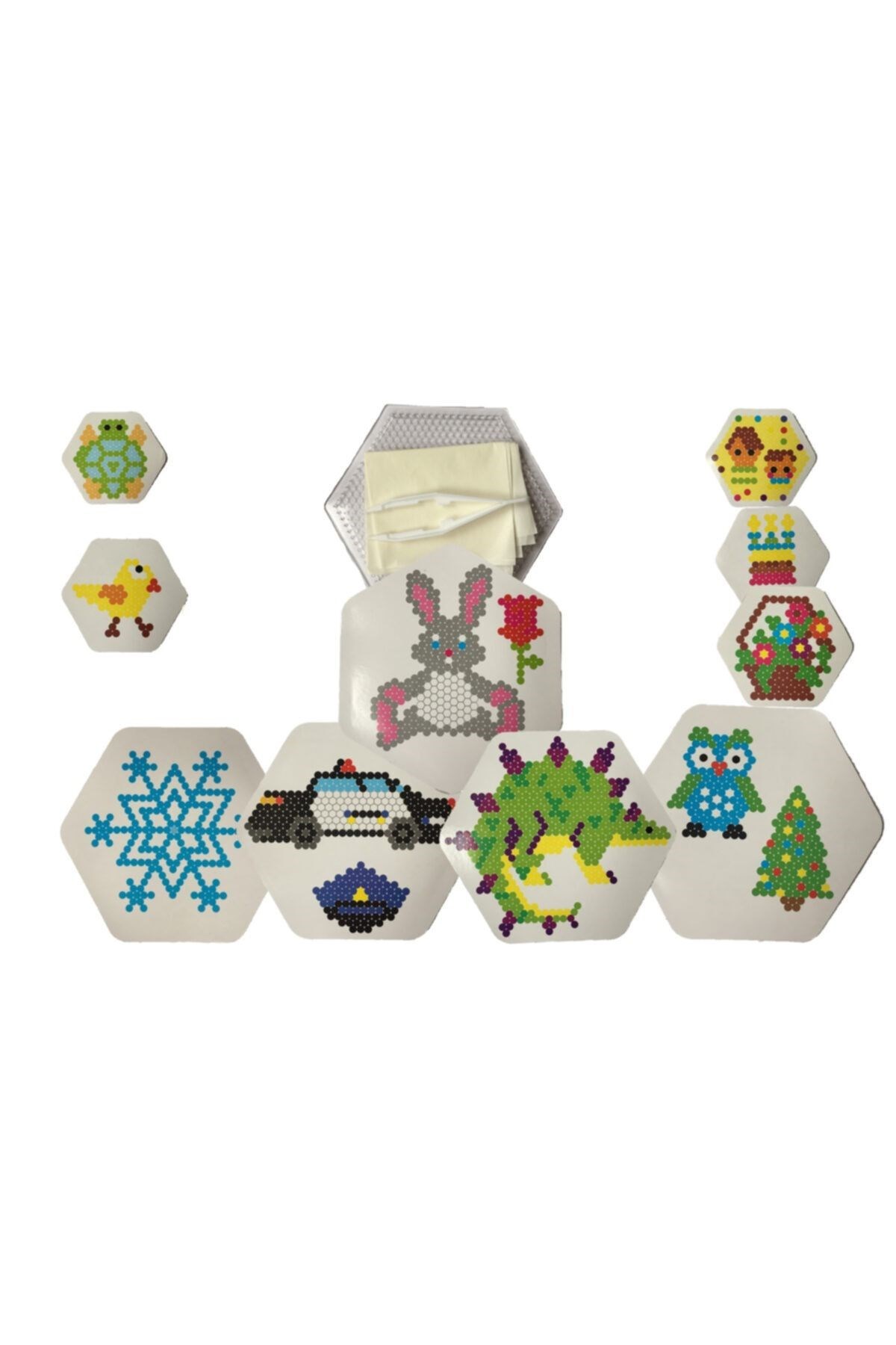 Boncuk seti içinde neler var · * 12 farklı renkte 10.000 boncuk · * 1 adet boncuk cımbızı · * 5 farklı tasarım şablonu 14x14cm · * 5 farklı tasarım şablonu 7.5x7.5cm · * 1 Kalıp çıkartıcı Altıgen 14x14cm · Boncuk setleri çocukların hangi becerilerini destekler · * Hayal gücü · * İnce-motor beceriler · * Odaklanma · * Üretkenlik · Boncuk setleri kaç yaşa uygun? 4 yaş ve üzeri hem kız hem erkek çocuklar için eğitici ve eğlencelidir.
