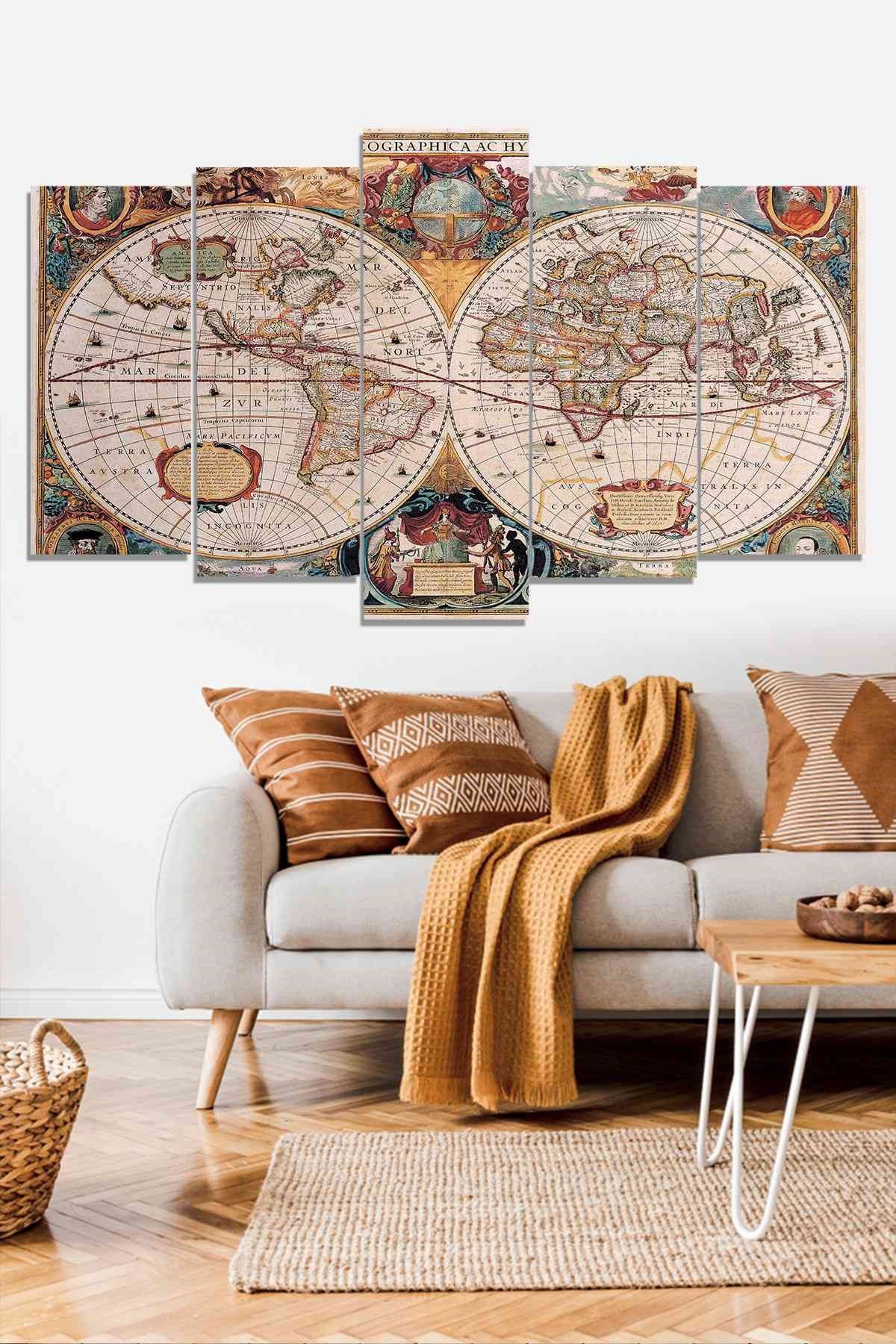 5 Parçalı Mdf Tablo - Dünya Haritası