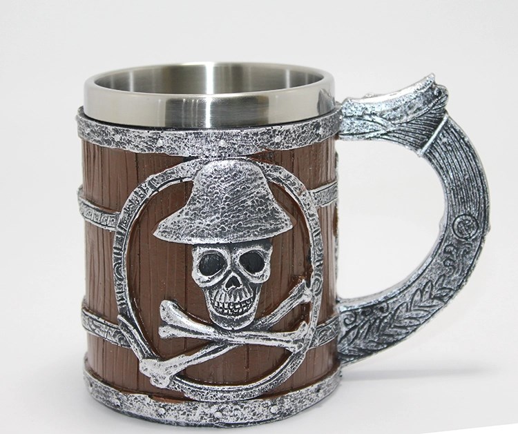 Korsan Temalı Ahşap Görünümlü 3d Kabartmalı Çelik Kupa Bardak