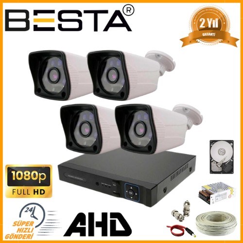 2 MP 1080P 4 Dış Mekan Kameralı AHD Güvenlik Seti