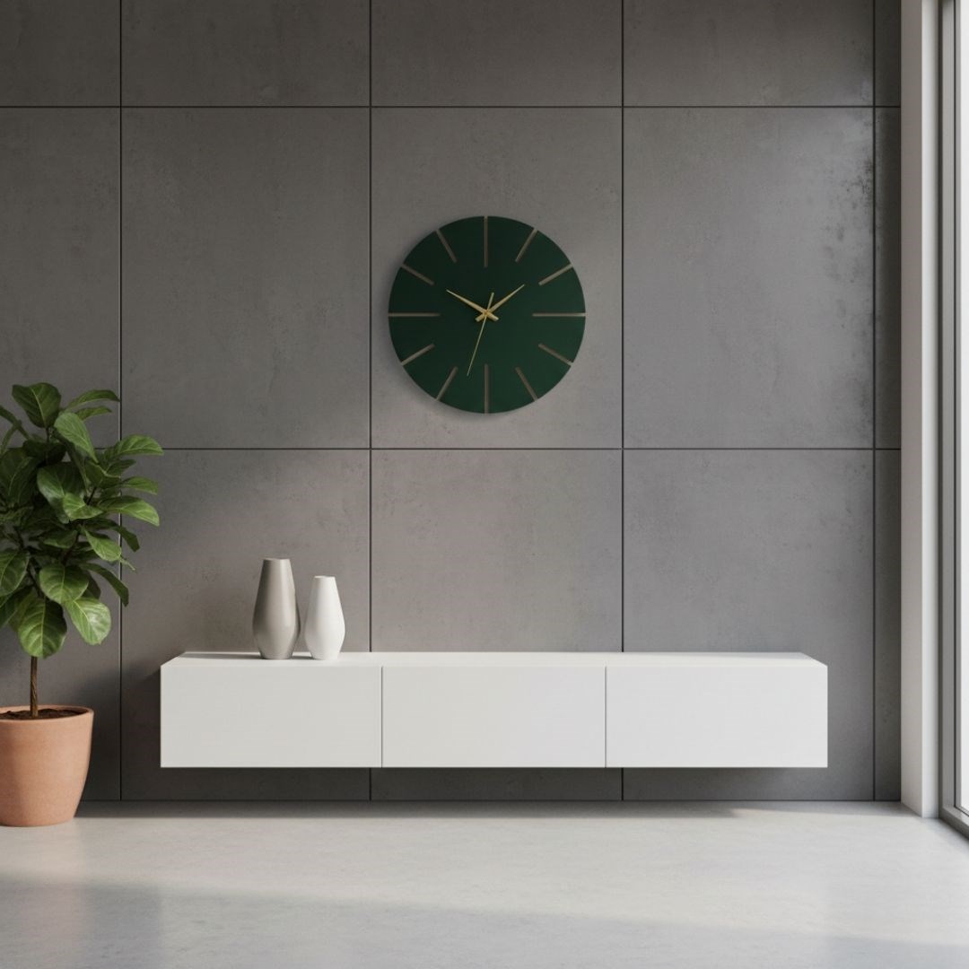 Ahşap Minimal Dekoratif Duvar Saati - 33x33 Cm Petrol Yeşili