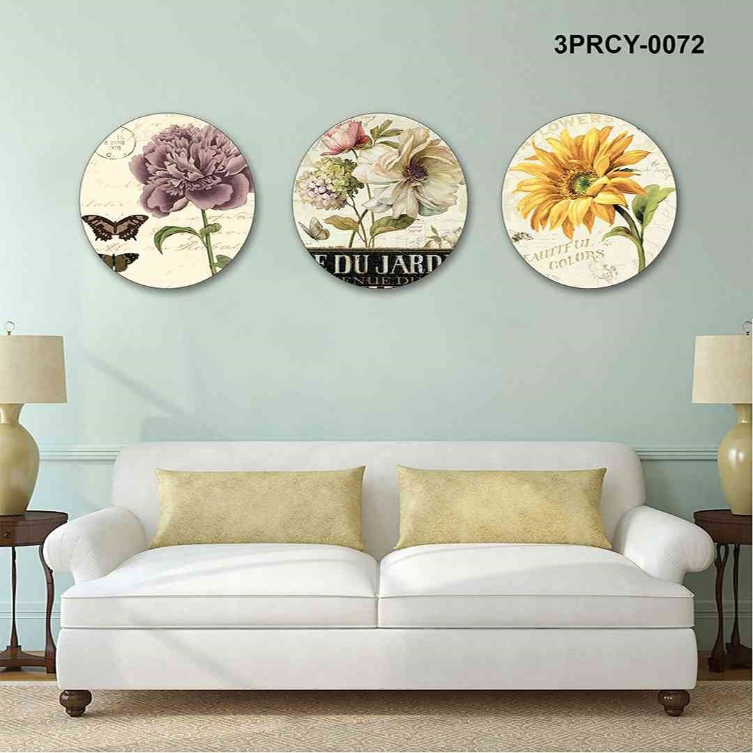 3 Parça Mdf Tablo Dekoratif Çiçekler - T-3Prcy-0072 30X30