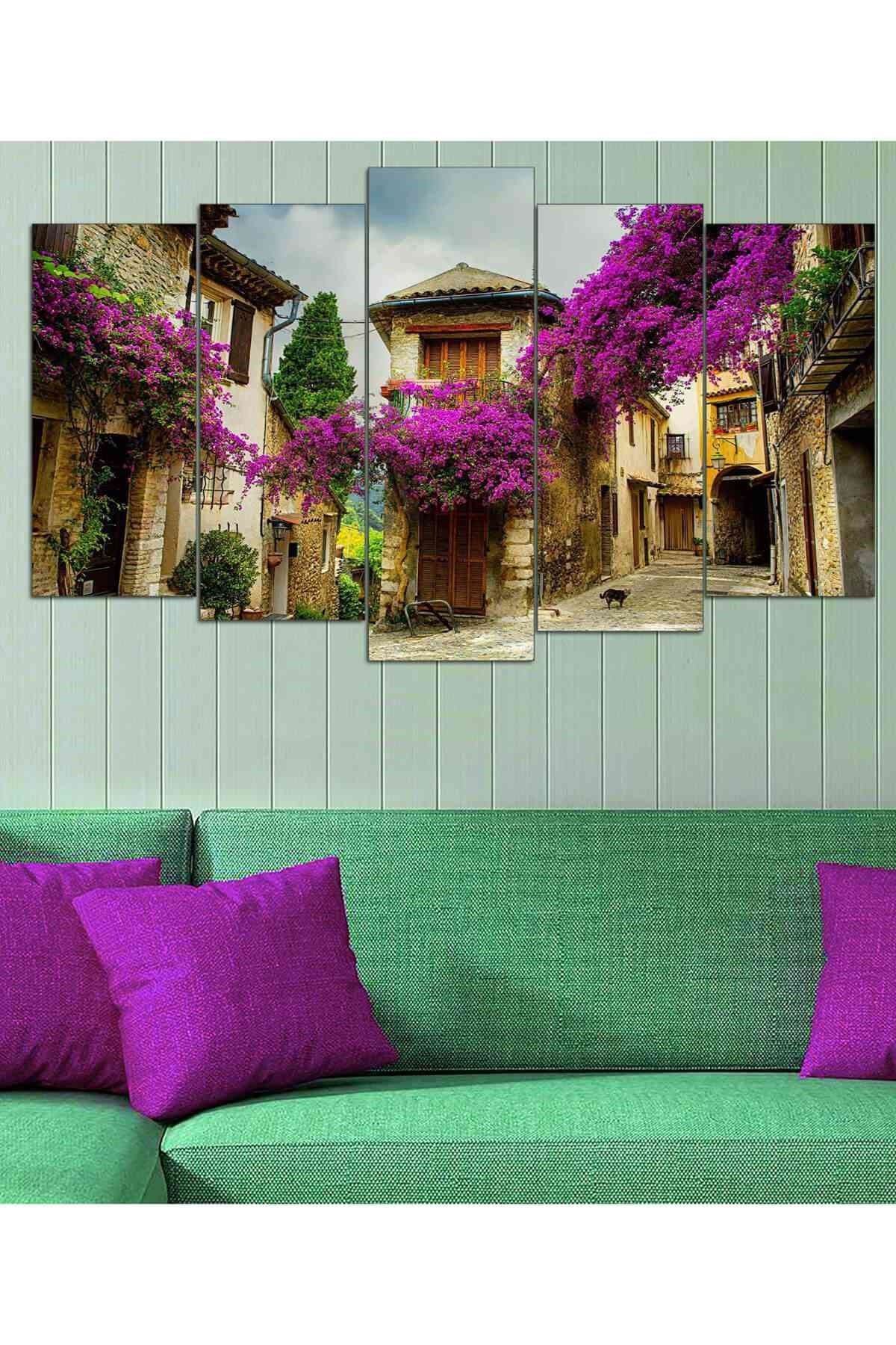 Renkli Alaçatı 5 Parçalı Mdf Tablo-T-5Mdf-0163