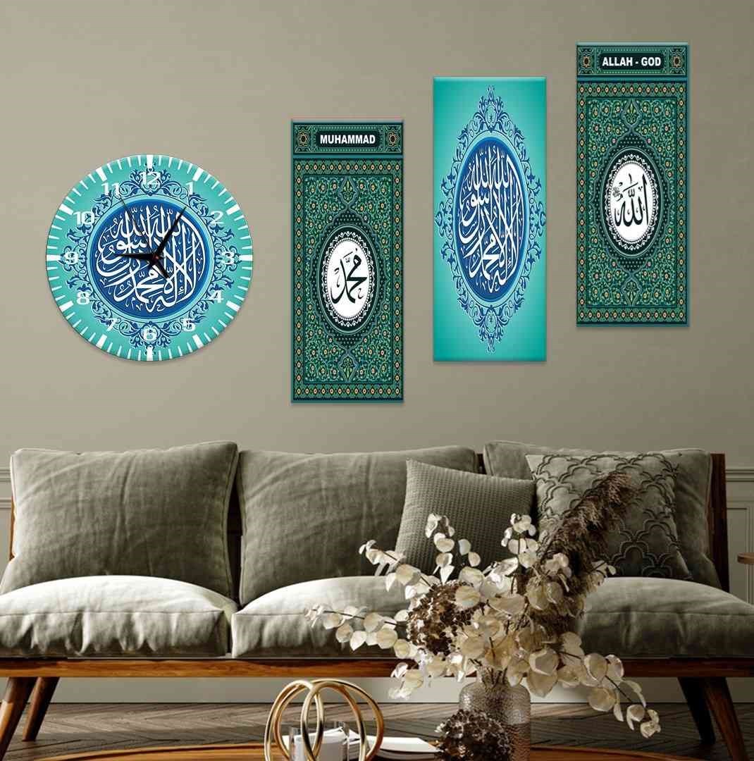 Evimona 4 Parça Dua Temalı Mdf Saatli Tablo Ds-011