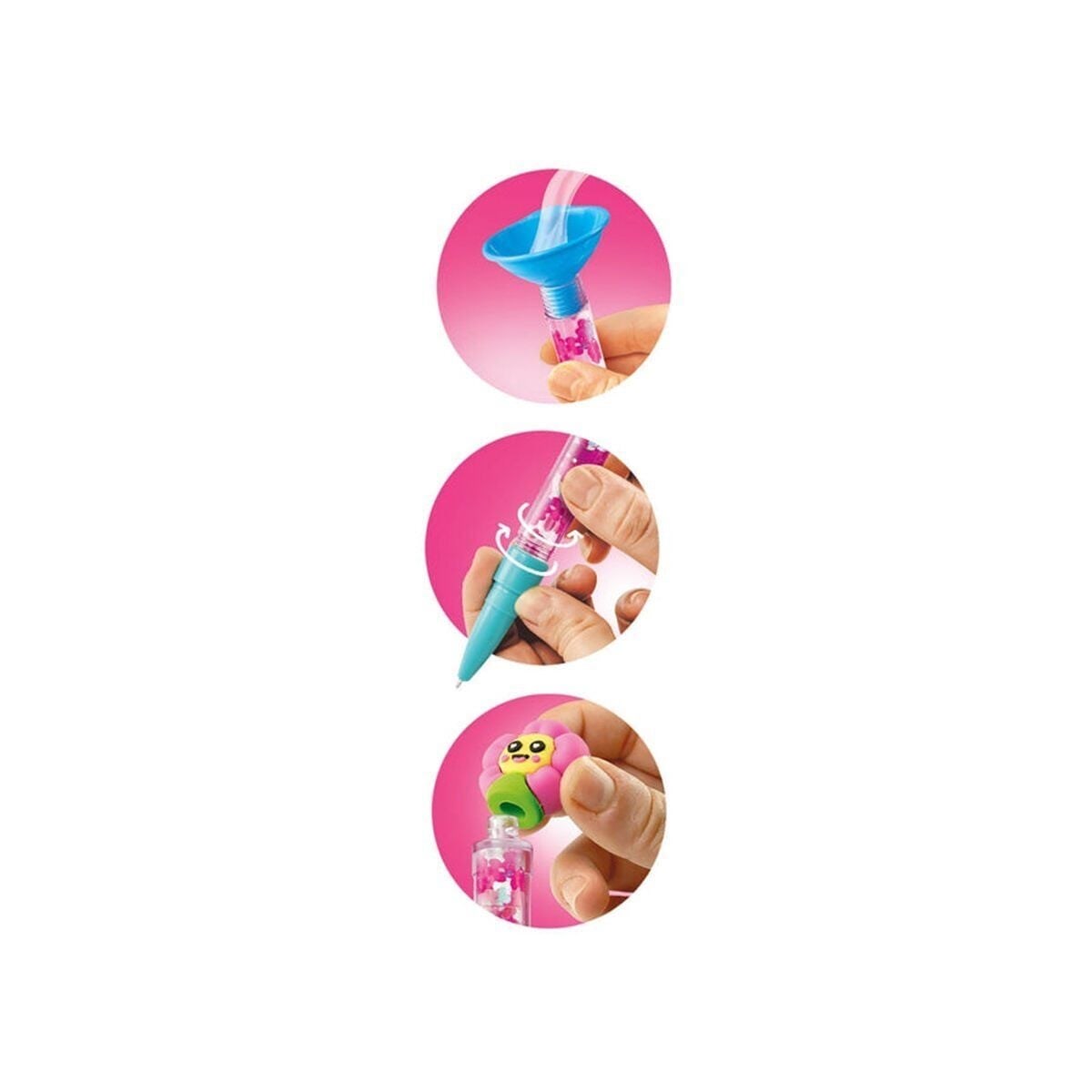 Pratik ve zengin bir set: 3 kalem, 4 farklı renkte mürekkep, 3 karakter ve bunları yapmak için gereken tüm malzemeler.