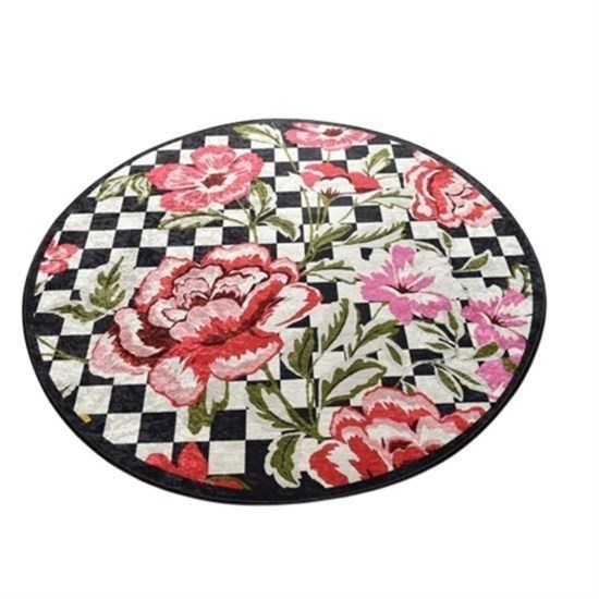 Black Rose Djt Çap 100 Cm Kaymaz Taban Dekoratif Halı-20420
