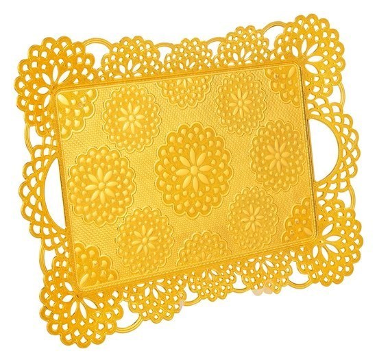 Dantel Dikdörtgen Servis Tepsisi (25Cmx39Cm) (Altın) - 26489