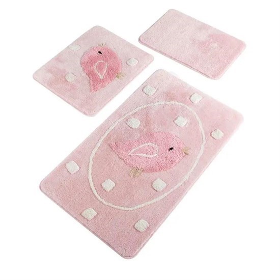 Bırdıe Pembe 3Lü Set Banyo Halısı-20397