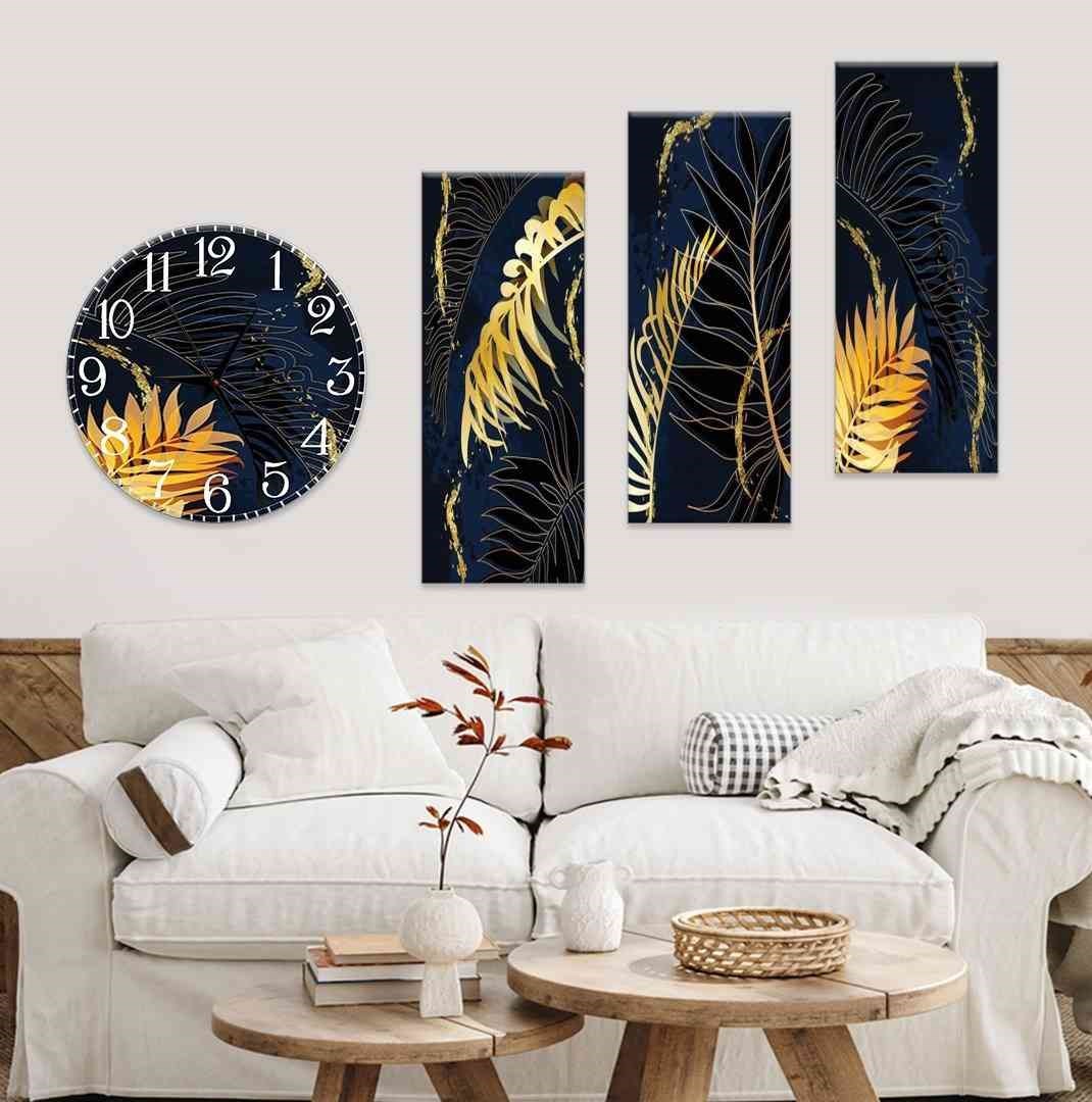 Evimona 4 Parça Çiçek Temalı Mdf Saatli Tablo Ds-0144