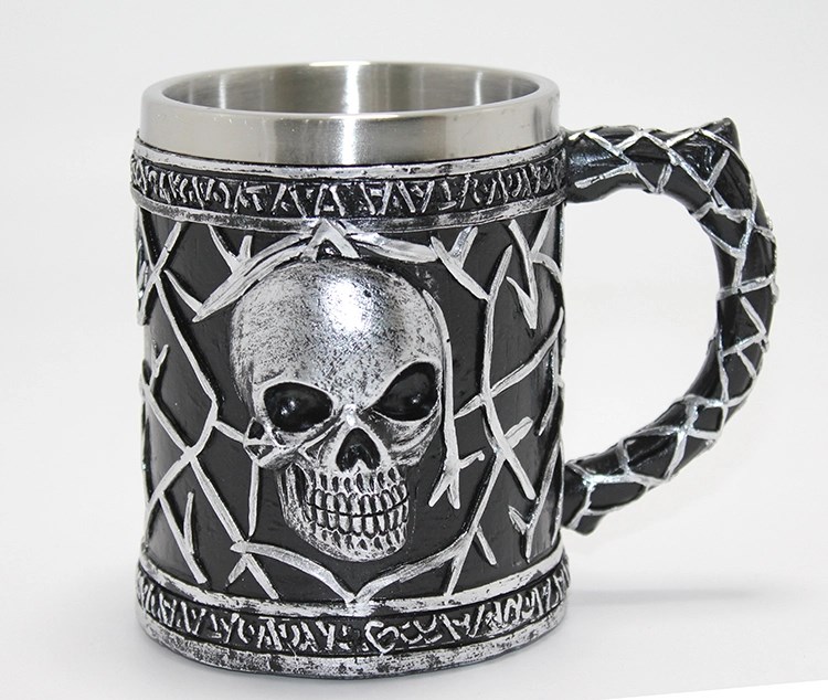 Gotik Kurukafa 3d Kabartmalı Paslanmaz Çelik Kupa Bardak