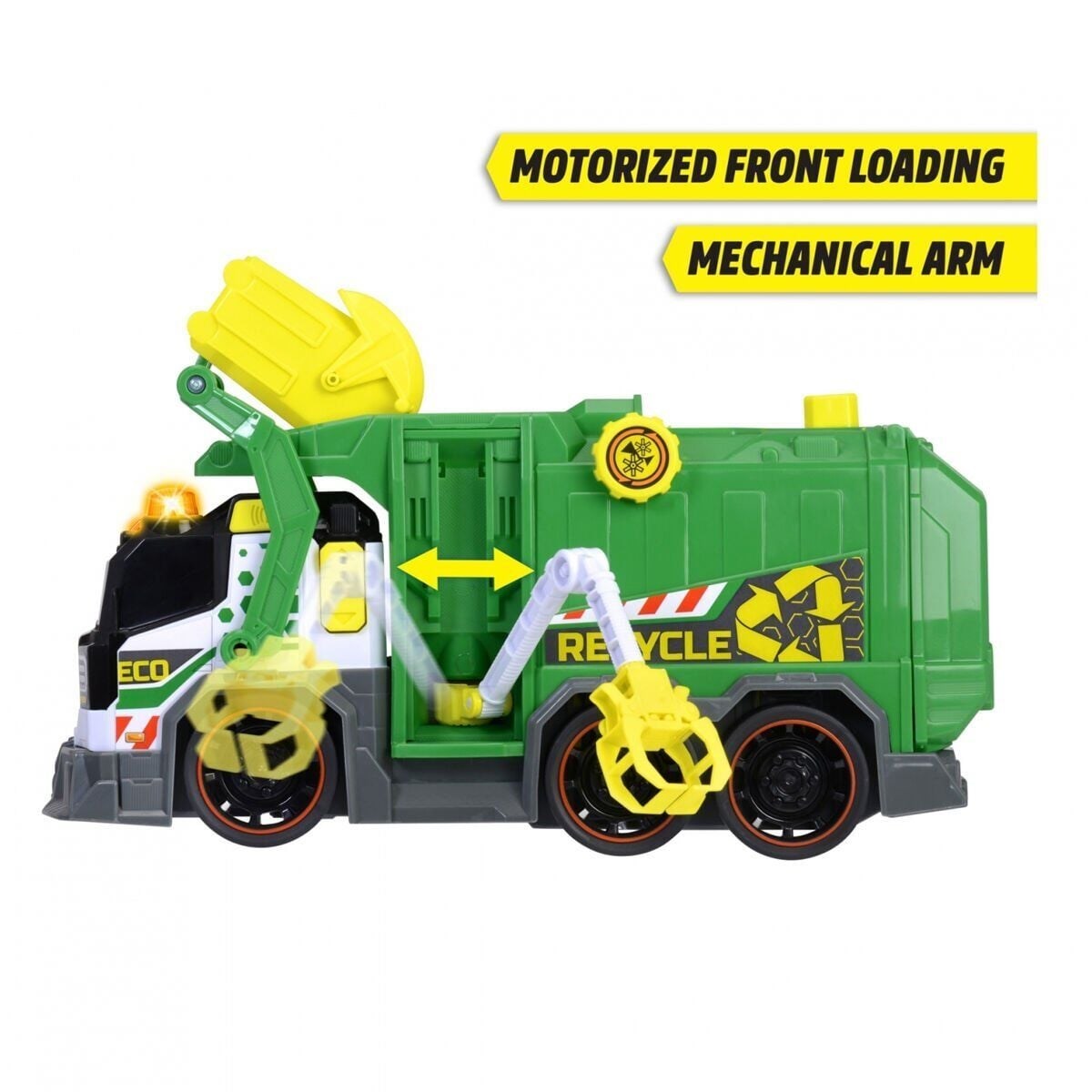 – Motorlu kaldırma işlevi, kavrama kolu, çöp kutusu, ışık ve ses efektleri ve çok daha fazlasına sahip, 3 yaş ve üzeri çocuklar için büyük oyuncak araç Nihai oyuncak geri dönüşüm aracı!