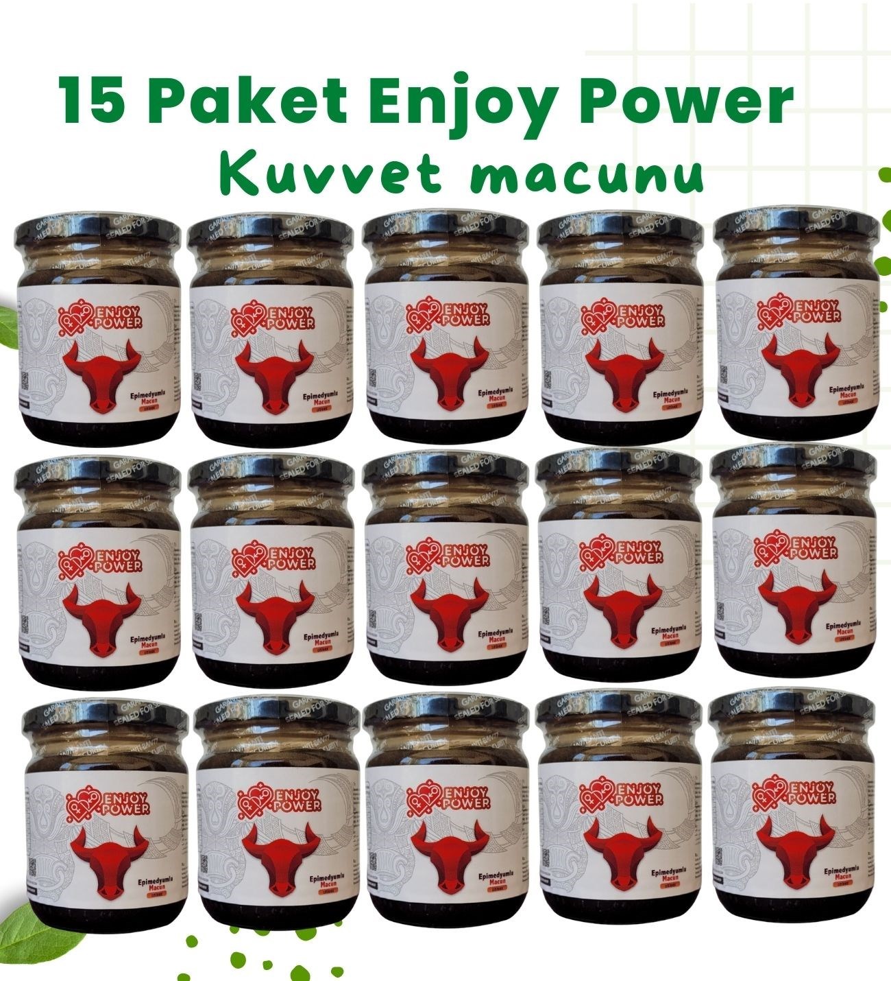Enjoy power epimedyumlu macun ,doğal epimedyum bitkisi ile formüle edilmiştir. Epimedyum bitkisi, cinsel sağlık uygulamalarıdır kullanılan bir karışımıdır. Macun , doğal içeriklerden oluşur ve hiçbir katkı maddesi ,yapay renklendirci veya koruyucu içermez.