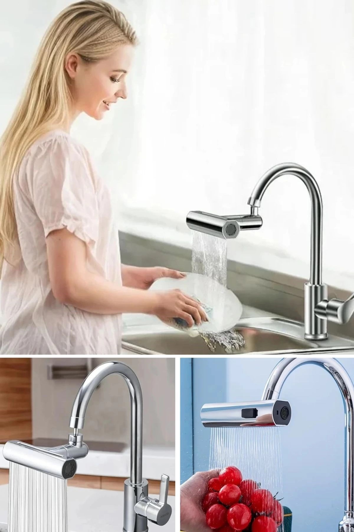 1080° Dönebilen Musluk Başlığı 2 Su Modlu Ayarlanabilir Esnek Tasarım