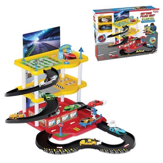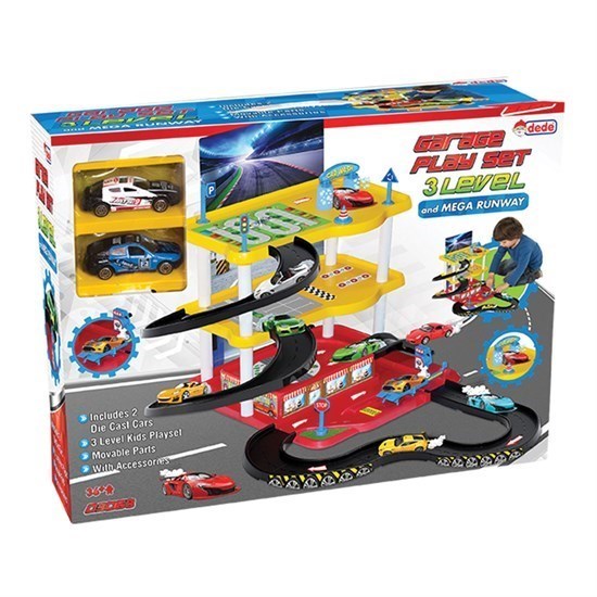 3 katlı oyun seti; 2 metal araba içerir. Hareketli parçalar ve aksesuarları ile birlikte hayalin bu garajda! Ürün ölçüsü; 570*445*730 mmdir. Ürün; 3 yaş altı çocuklar için uygun değildir. Sağlık testlerinden geçmiştir.
