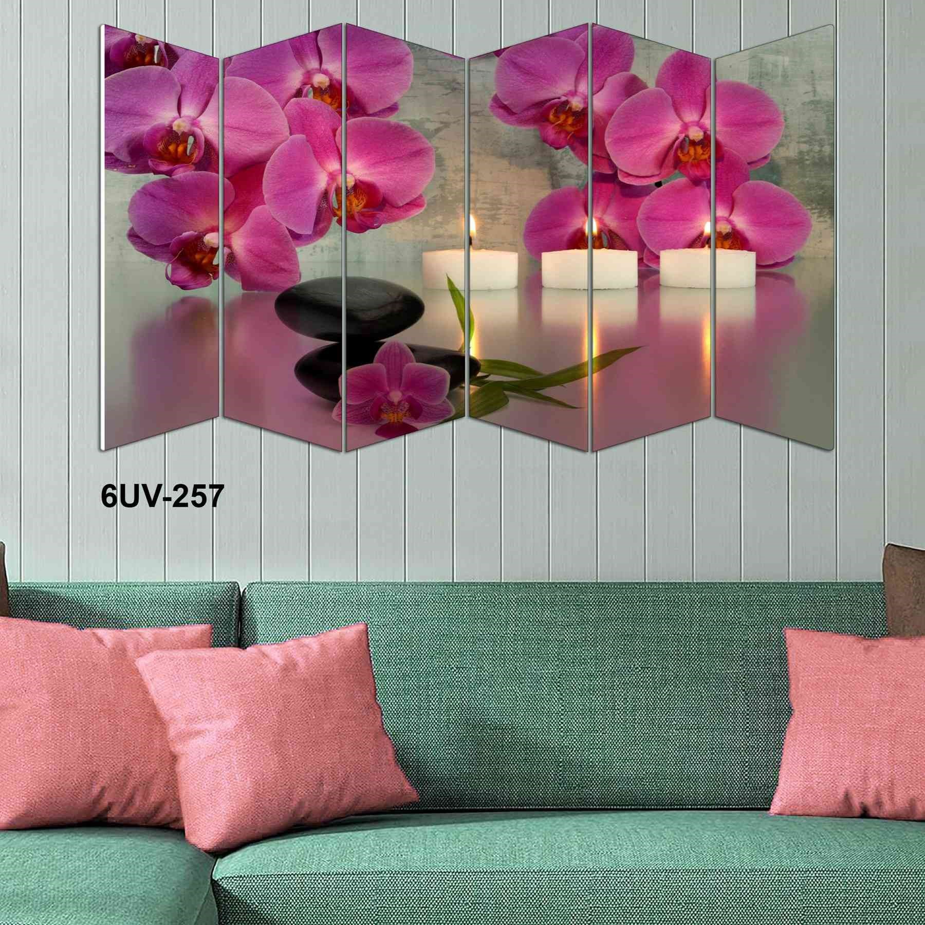 5 Parça Pembe Çiçek Mum Tasarım Mdf Tablo - 6Uv-0257 100X60 6Uv-0257