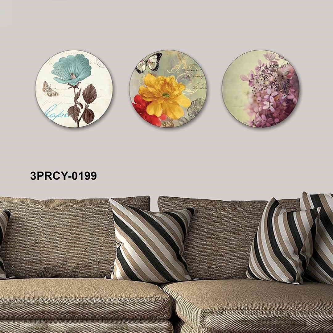 3 Parça Çiçekli Tasarım Mdf Tablo - 3Prcy-0259 30X30