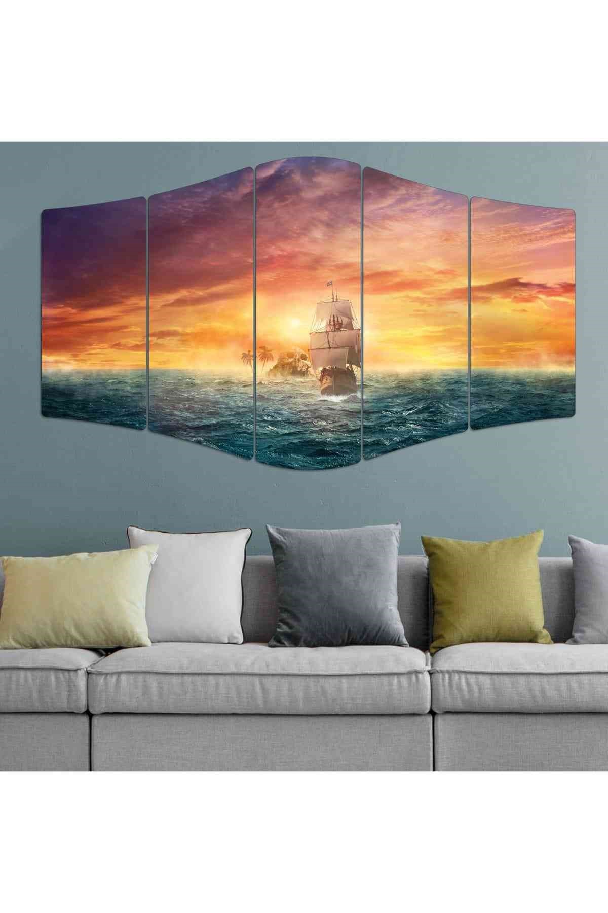 3 Parça Dekoratif Çiçekler Çizim Mdf Tablo - 3Yatay-518 30X40