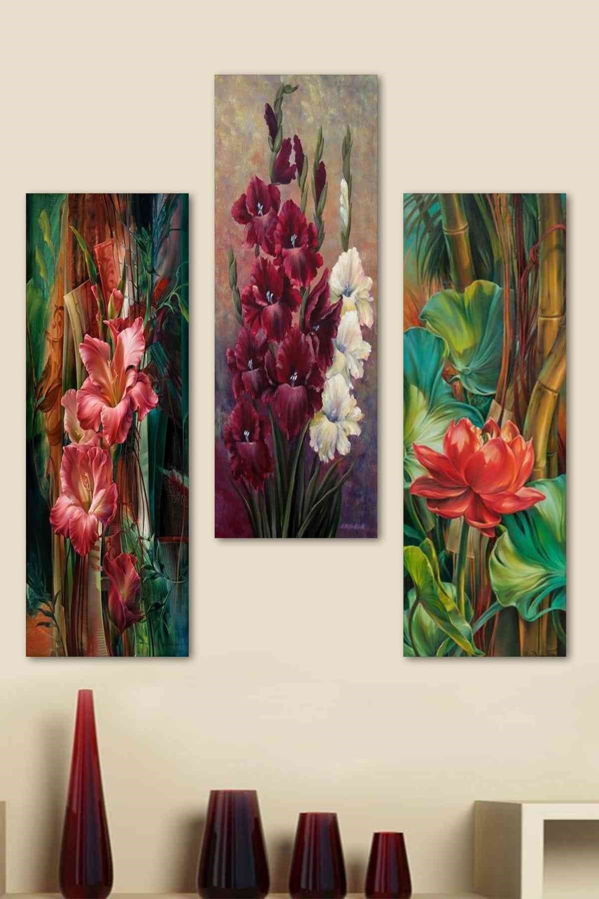 3 Parça Pembe Laleler Mdf Tablo - T-3Dikey-95 19X40