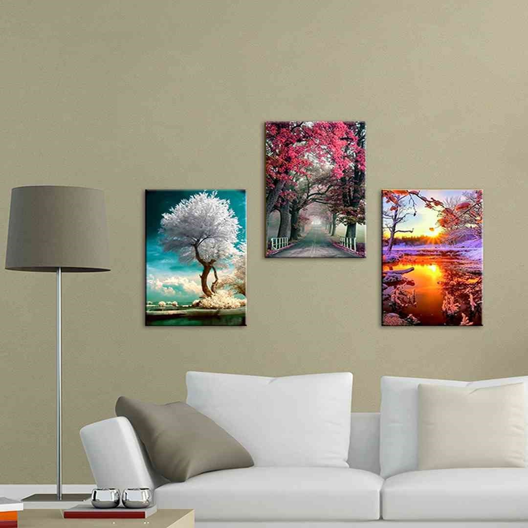 3 Parça Mevsimlerde Ağaçlar Mdf Tablo - 3Prc40X30-0085 40X30