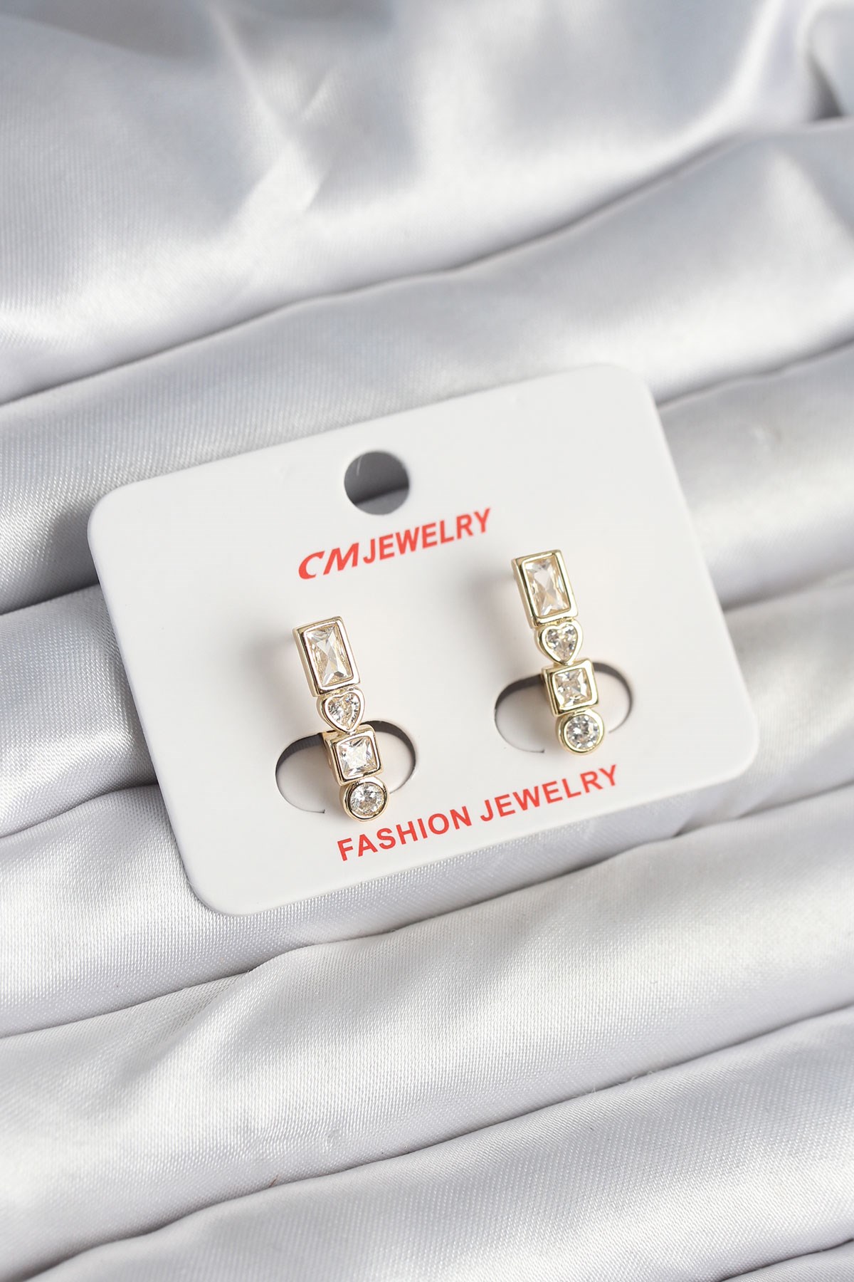 Pirinç Gold Renk Zirkon Taşlı Vintage Kadın Küpe