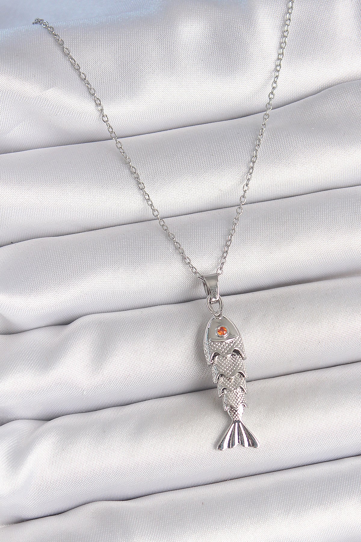 316L Çelik Zincir Gümüş Renk Zirkon Taşlı Balık Figürlü Kolye