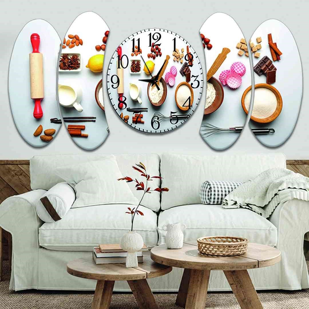 5 Parça Mutfak Seti Saatli Mdf Tablo - 5Ys-016 120X60
