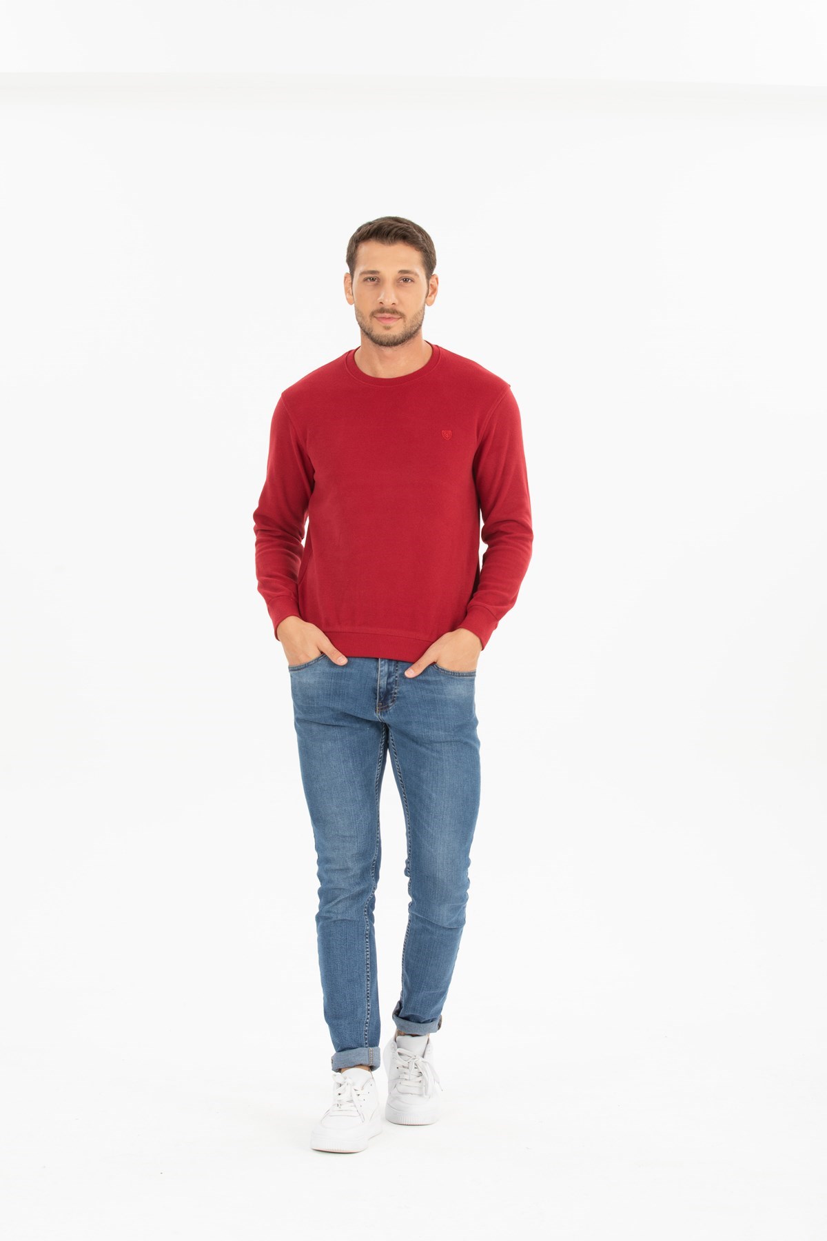 Erkek Kırmızı Standart Fit Normal Kesim Pamuk 0 Sıfır Yaka Sweatshirt