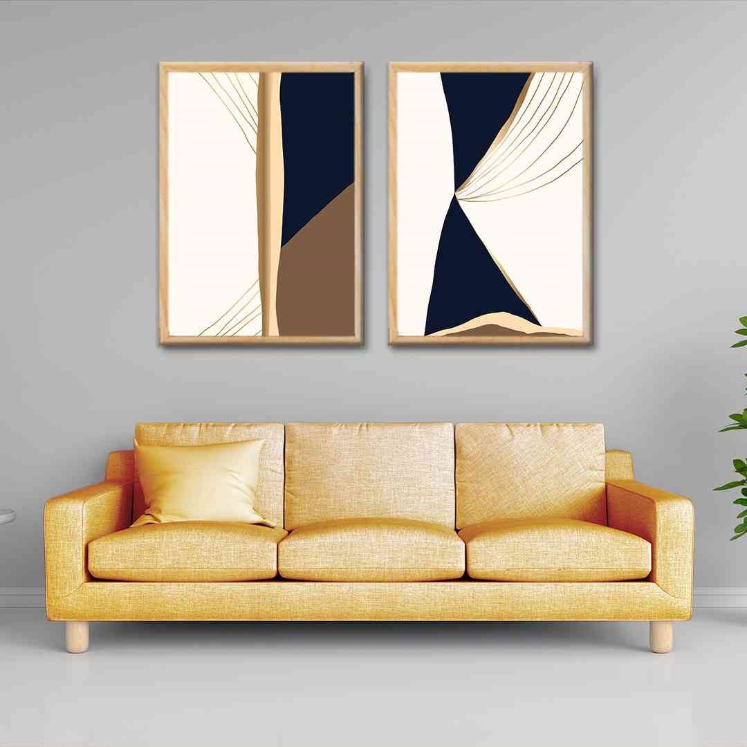 Evimona Ceviz Lamine Çerçeveli 2Li Set Soyut Mdf Tablo 50 X 70 Cvr-2-026