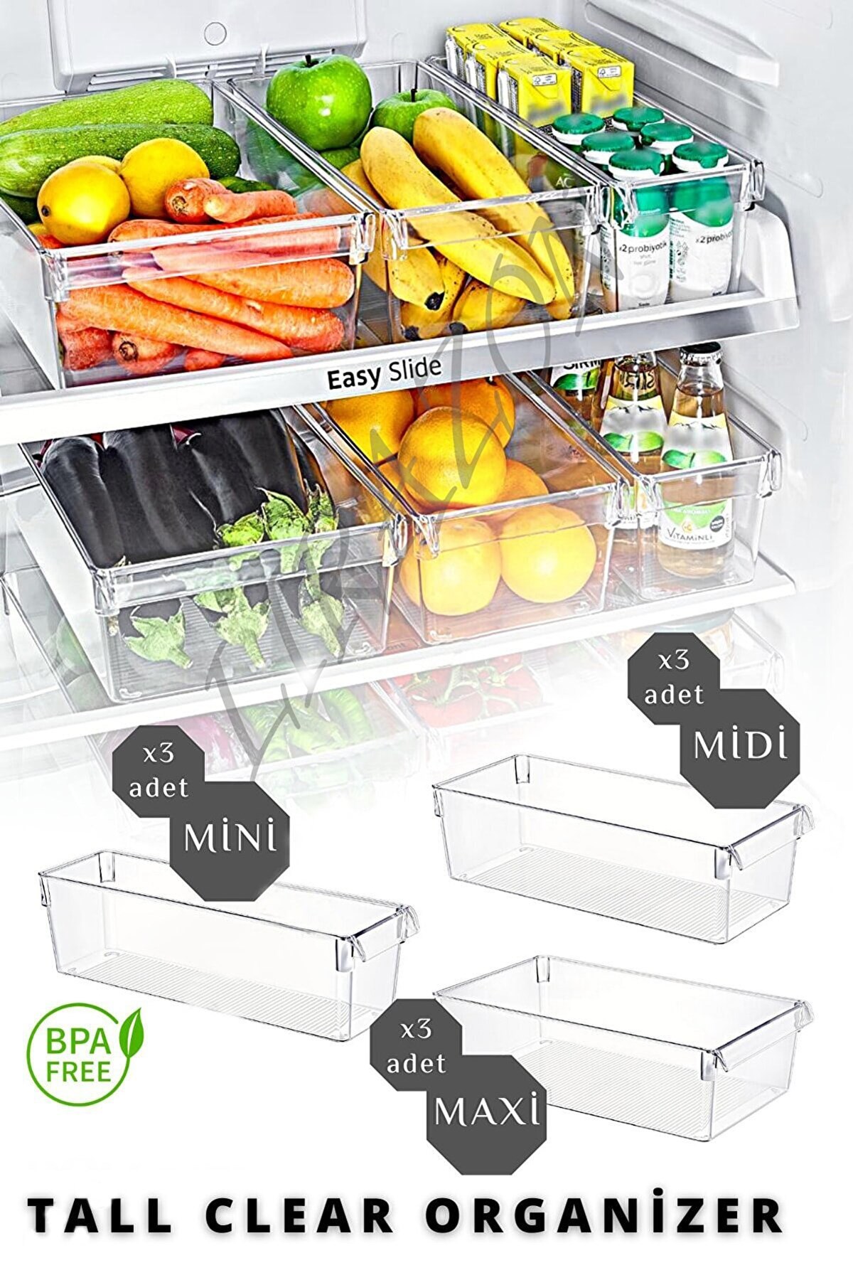 9'Lu Set Tall Clear Buzdolabı & Dolap Içi Düzenleyici Organizer