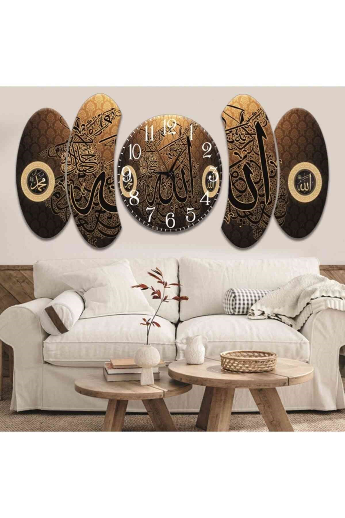 5 Parça Dua Temalı Tasarım Saatli Mdf Tablo