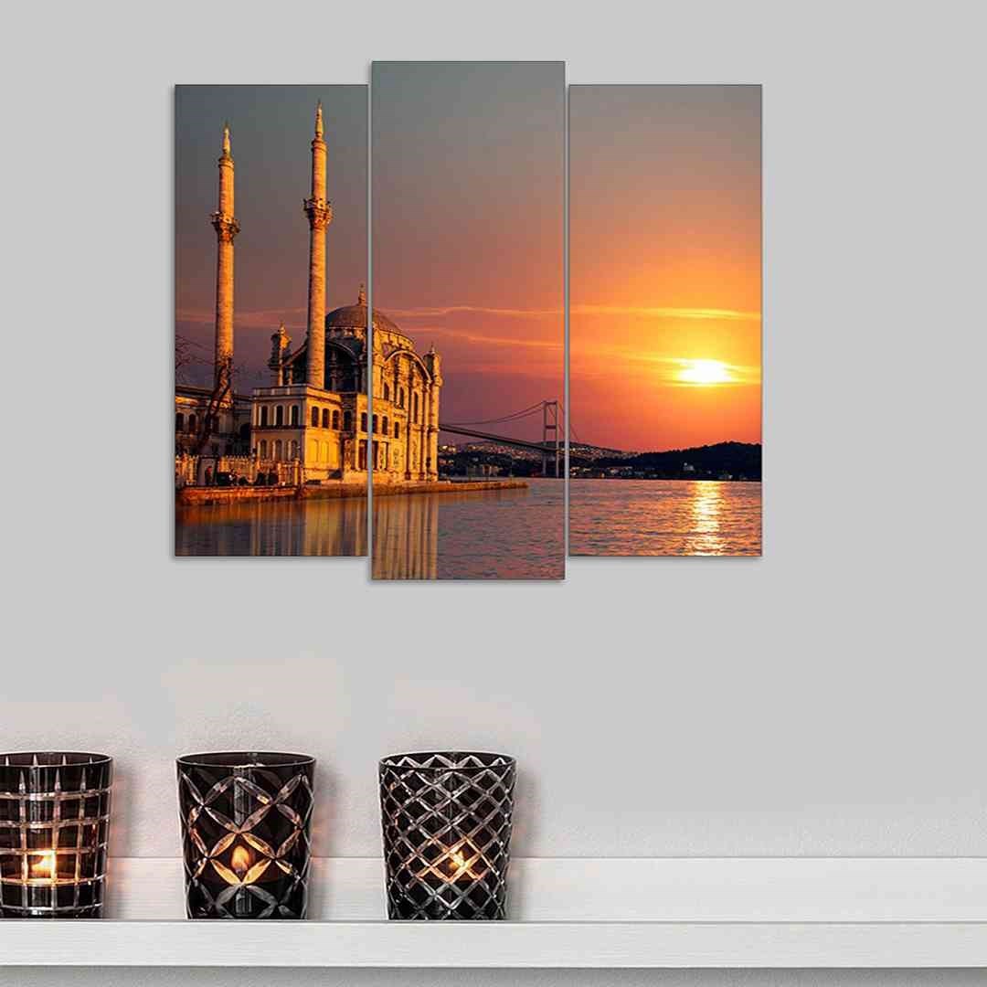 3 Parçadan oluşur. Her bir parçanın ölçüsü 40 cm x30 cm dir. 3mm kalınlığında mdf malzeme üzerine, özel dijital baskı tekniği uygulanmıştır. Kuru bez ile temizlenebilir. Çift taraflı bant ile duvara rahatlıkla yapıştırılır.