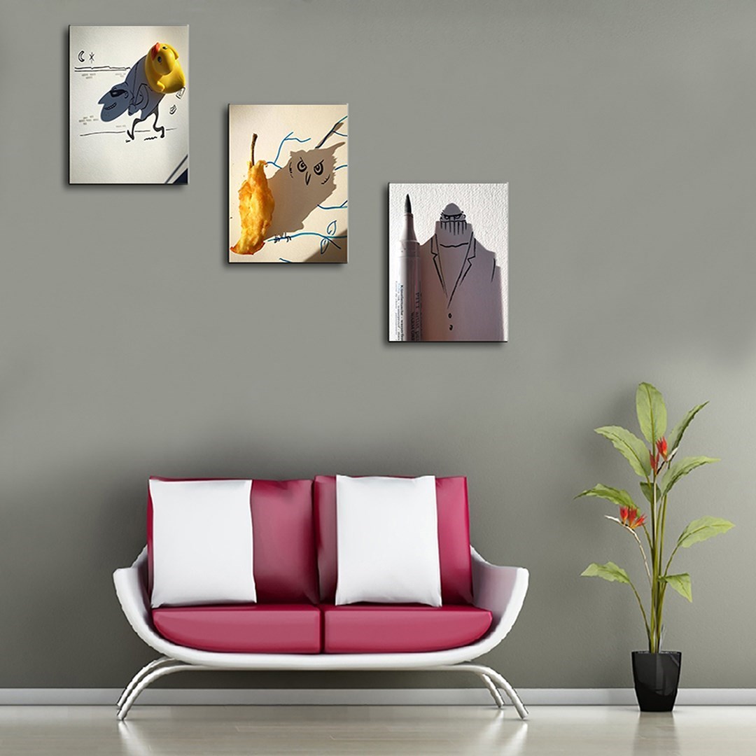 3 Parça Dekoratif Çizim Desenler Mdf Tablo - T-3Mdf-306 30X30