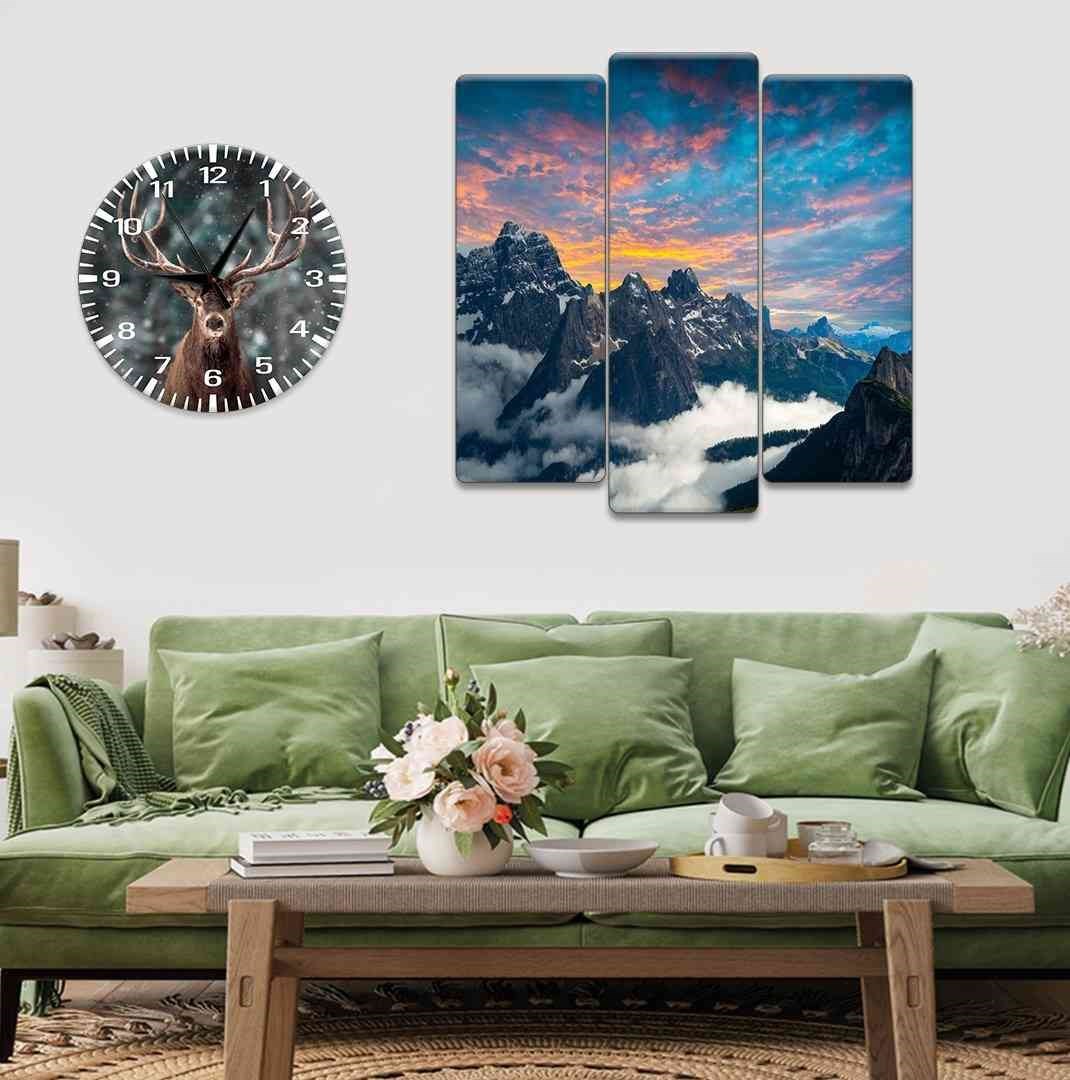 Evimona 4 Parça Doğa Temalı Mdf Saatli Tablo Ds-0112