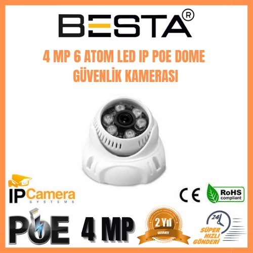 4 MP çözünürlüğü ile kaliteli full hd görüntü sunar. Gece görüş için 6 atom ledi bulunan KD-1248 ışıksız ortamlarda da kaliteli ve net görüntü sağlar. İç mekanlarınızda güvenle tercih edebileceğiniz ip poe dome güvenlik kamerasıdır