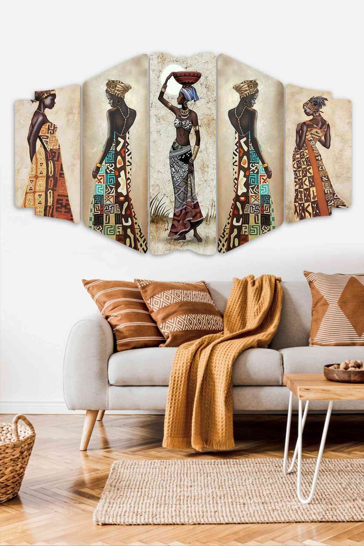 Evimona 5 Parçalı Afrikalı Kadınlar Mdf Tablo
